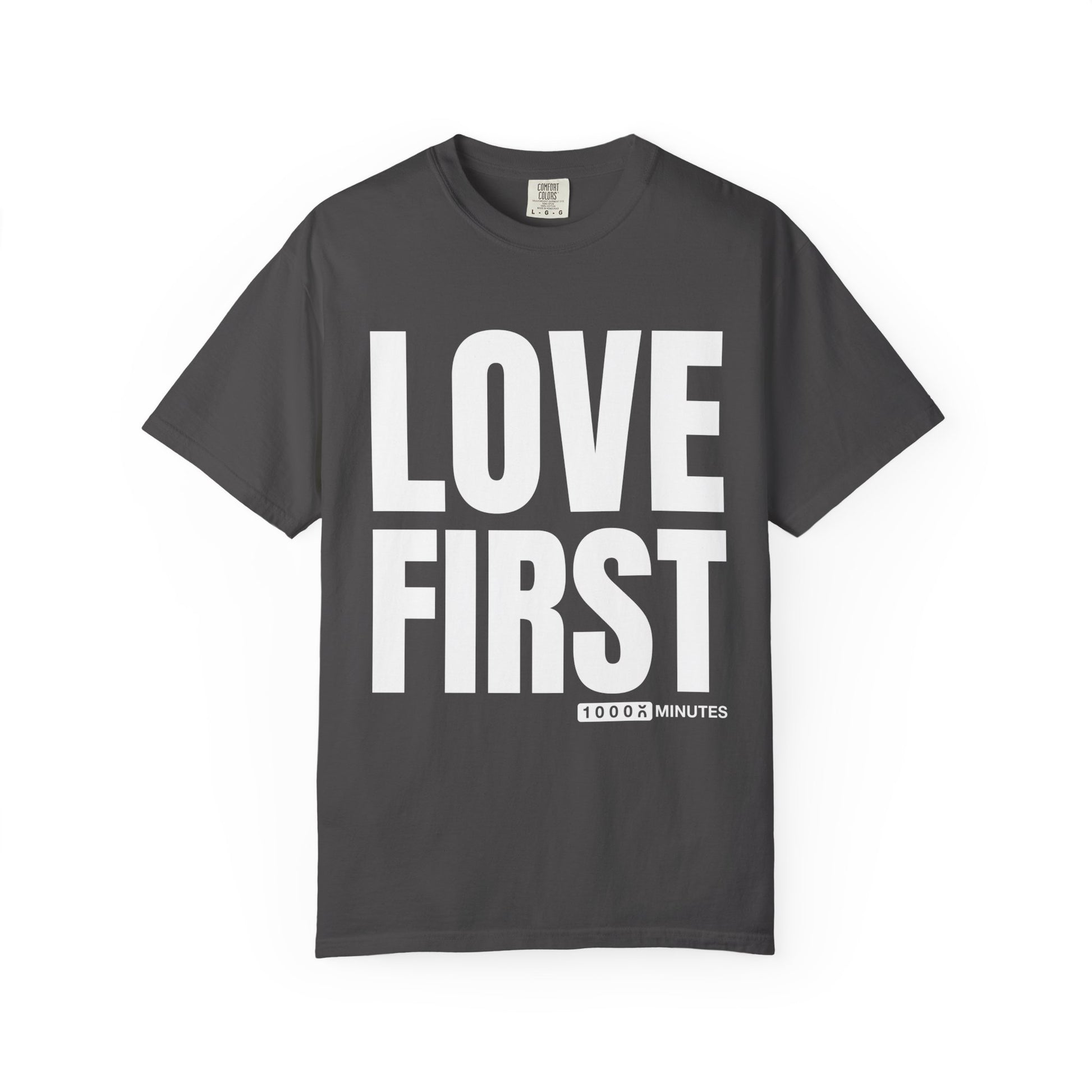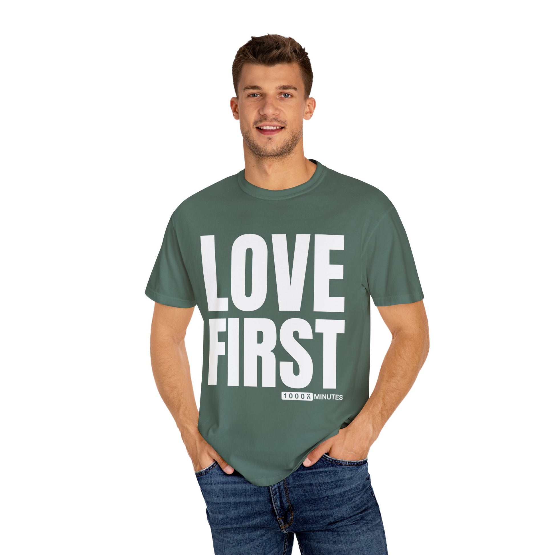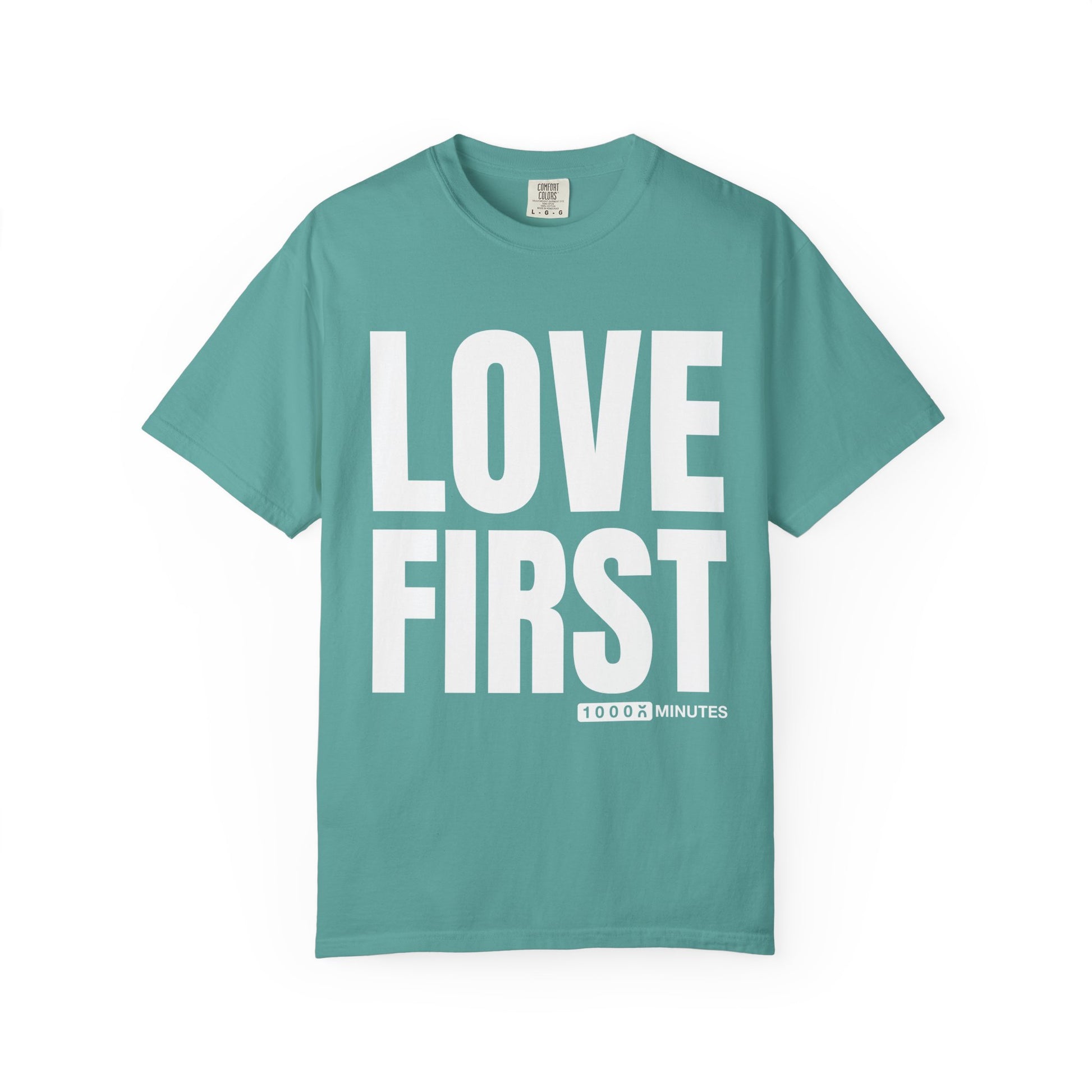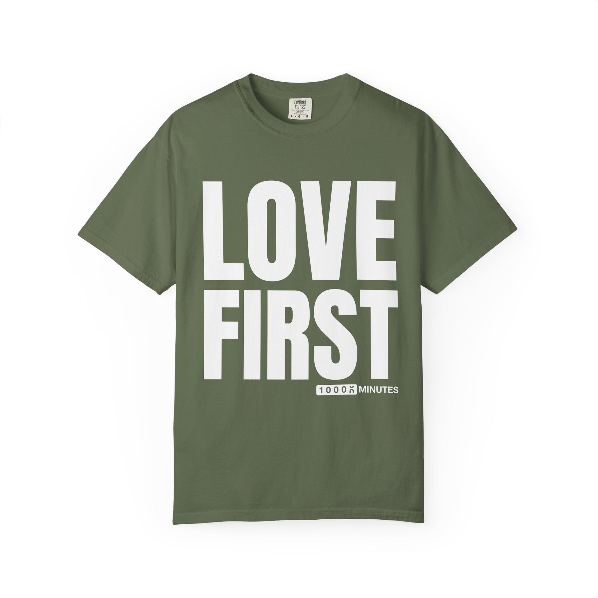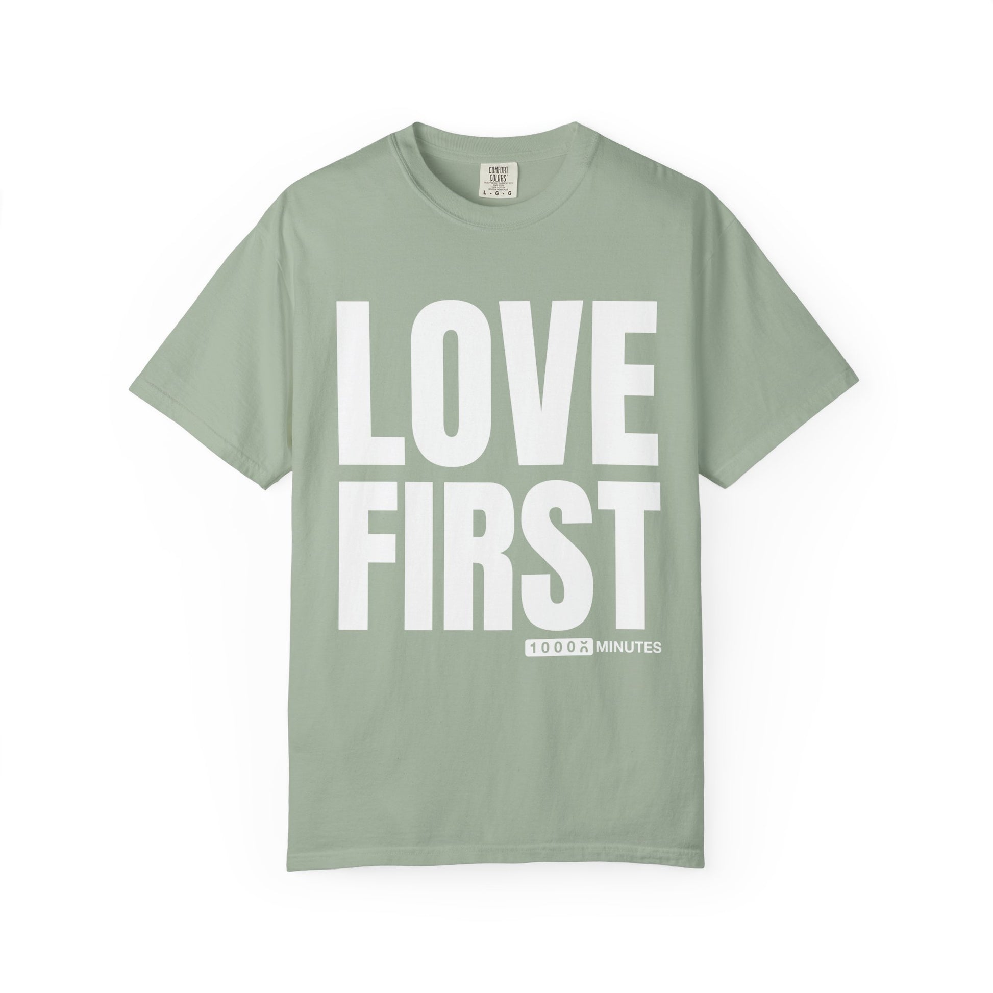 LOVE FIRST (block) - Vintage Garment-Dyed Unisex T-Shirt w/ mulitple color options